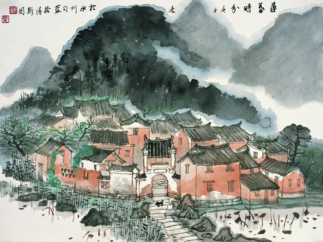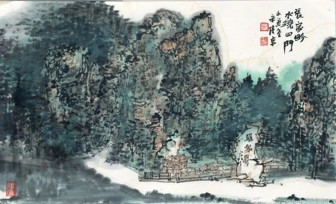 宋陆京《张家界水绕西门》 纸本设色 39x65cm 2022年