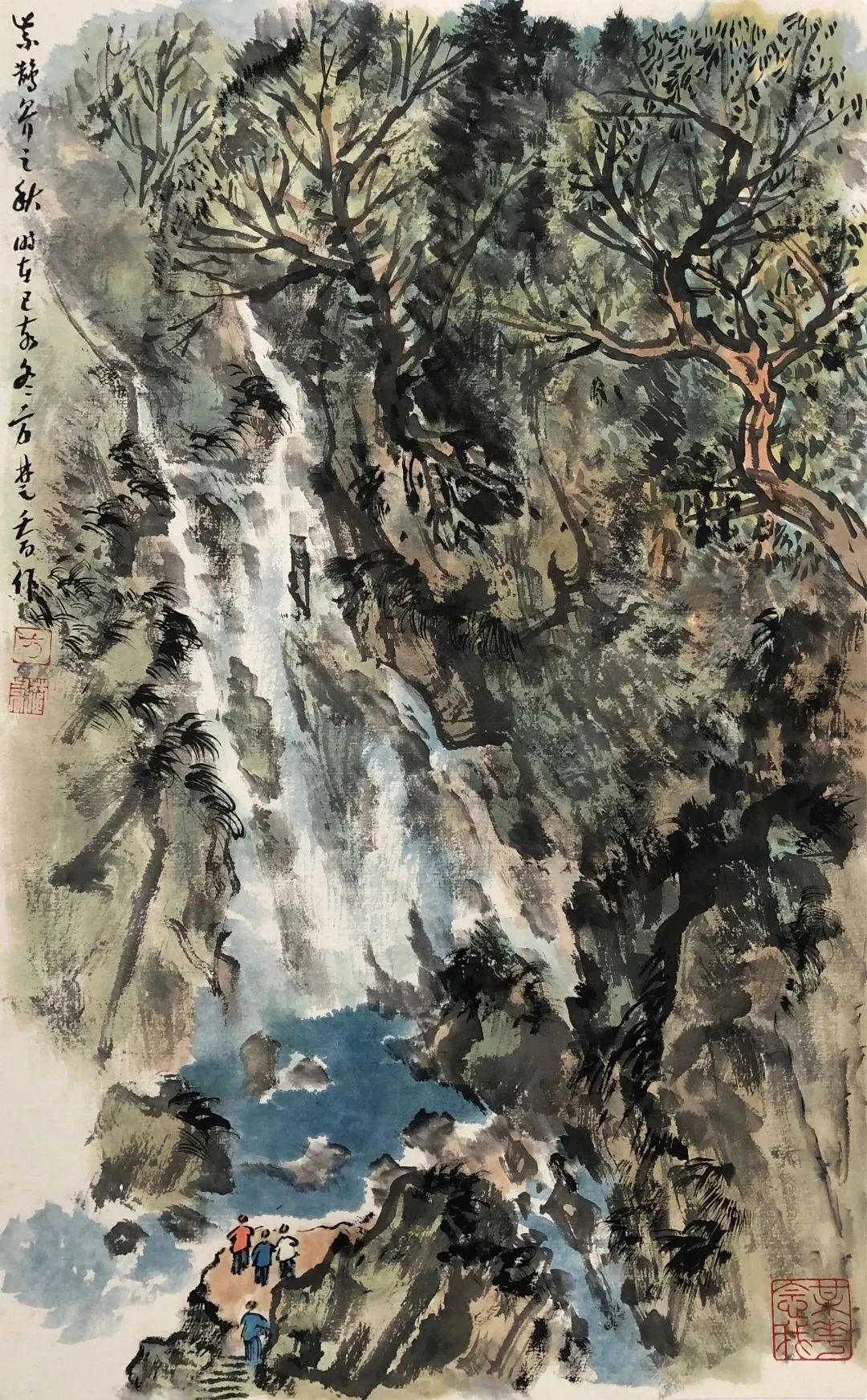 陈粤丹《山谷清音》 纸本设色 65x33cm