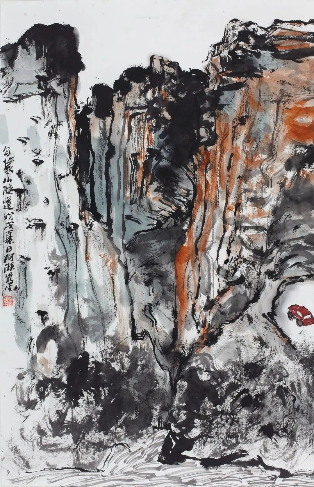 蒋彦《老山界纪游》 纸本墨笔 136x68cm