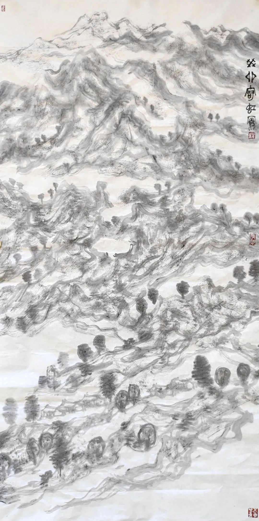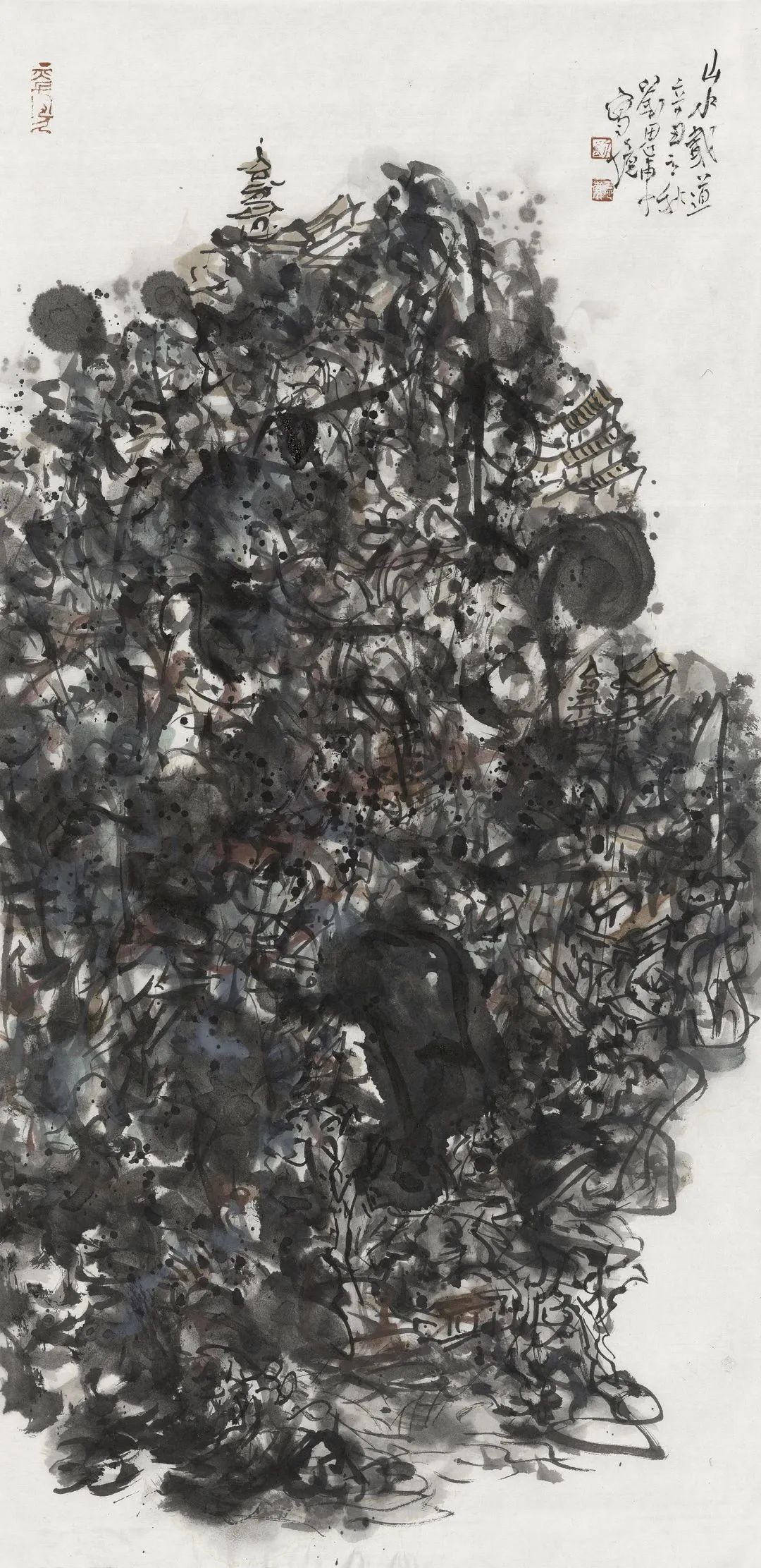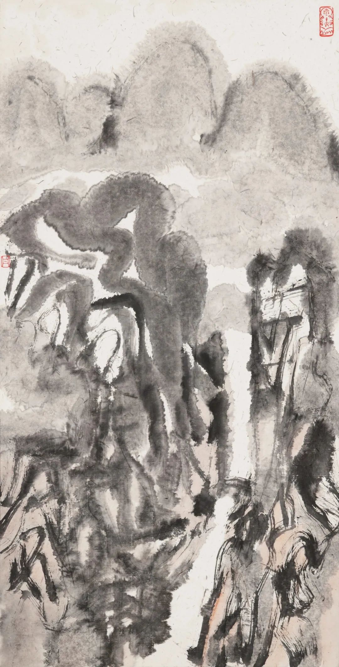 蔡拥华《不辩仙山何处寻》 纸本墨笔 138×69cm 2021年