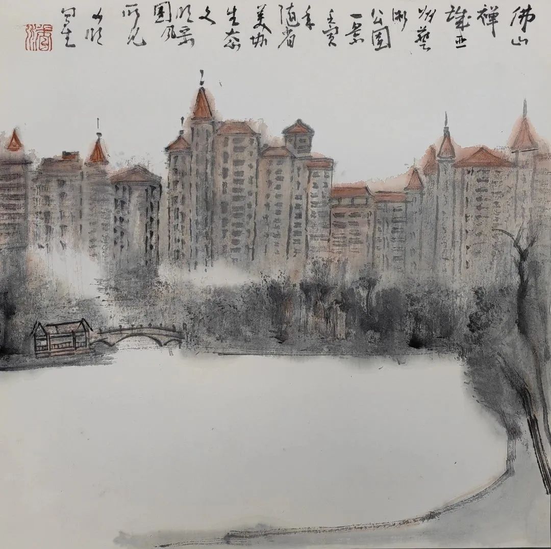 潘小明《佛山亚艺公园一景》 纸本设色 38x38cm 2022年