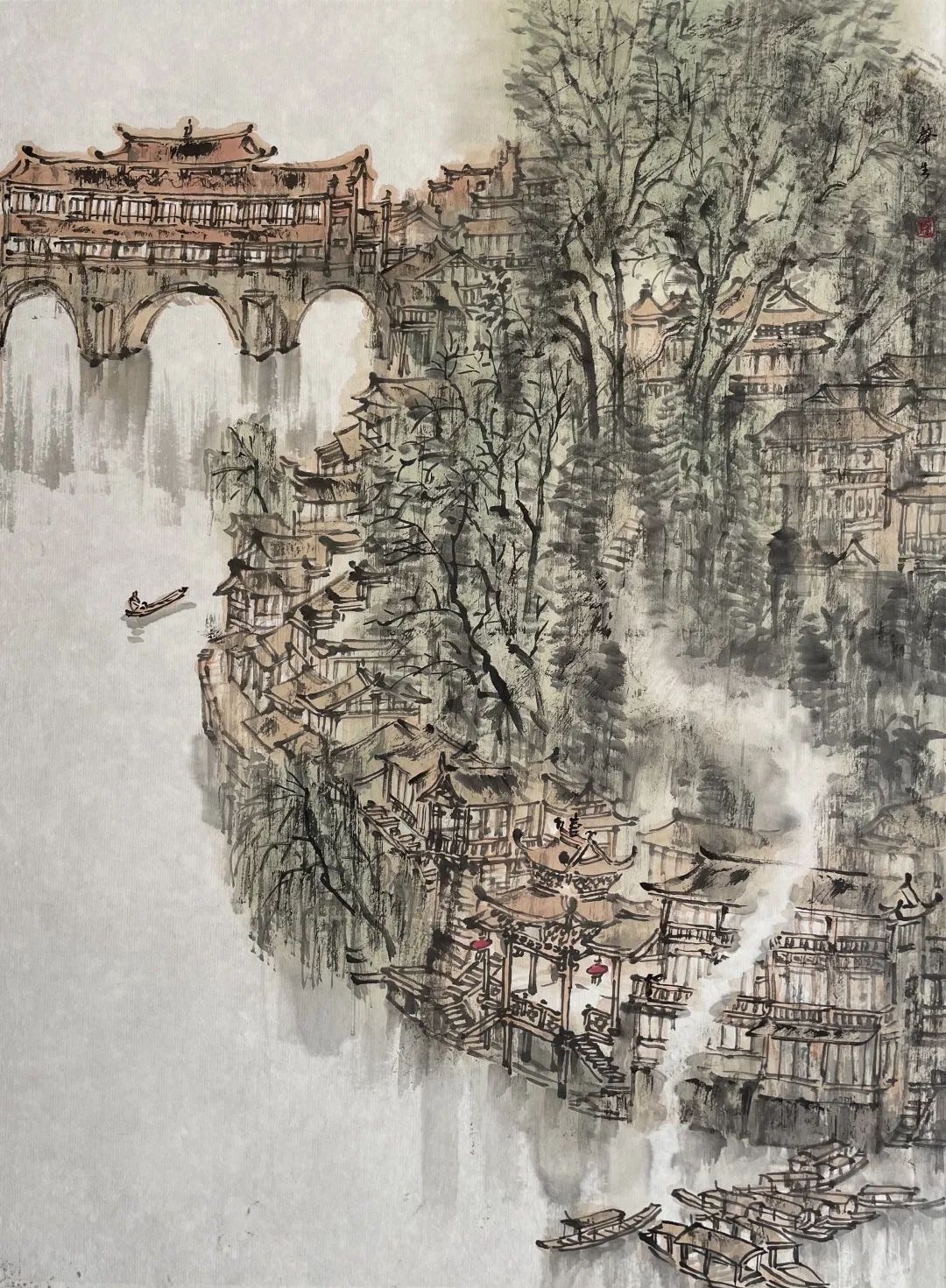 王永《榕城行记八》 中国画 44x66cm 2023年
