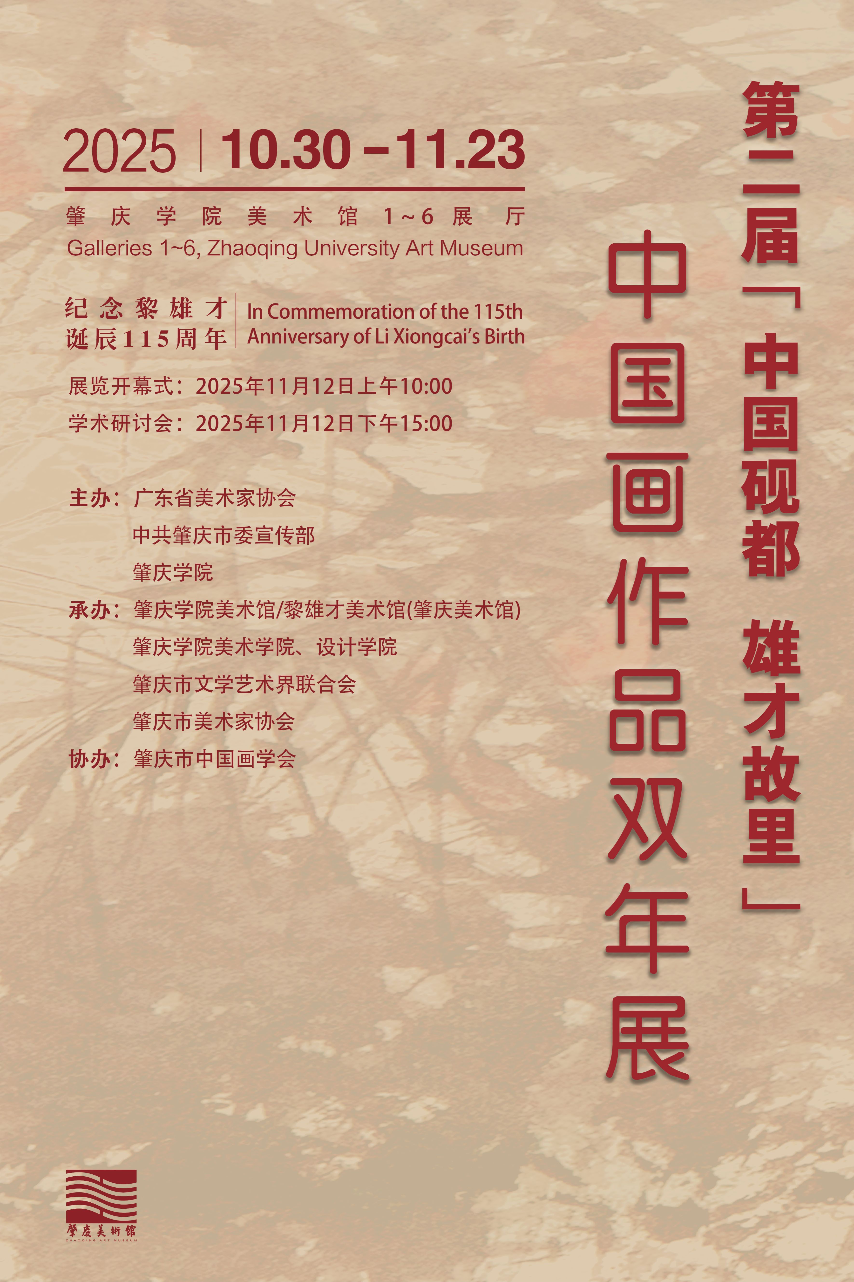 本网讯 在肇庆学院55周年校庆、肇庆市第十五届全国运动会和残特奥会即将到来之际,美术馆以自主策划的省级品牌展览:第二届“中国砚都 雄才故里——中国画作品双年展”向学校、向城市献礼!本展览将“砚都”物质文化遗产与“雄才”精神内核相融合,为中国画的当代创作与研究寻根溯源,在“纪念黎雄才先生诞辰110周年——广东省中国画作品展”和首届“中国砚都 雄才故里——中国画作品双年展”基础上奋力前行。
