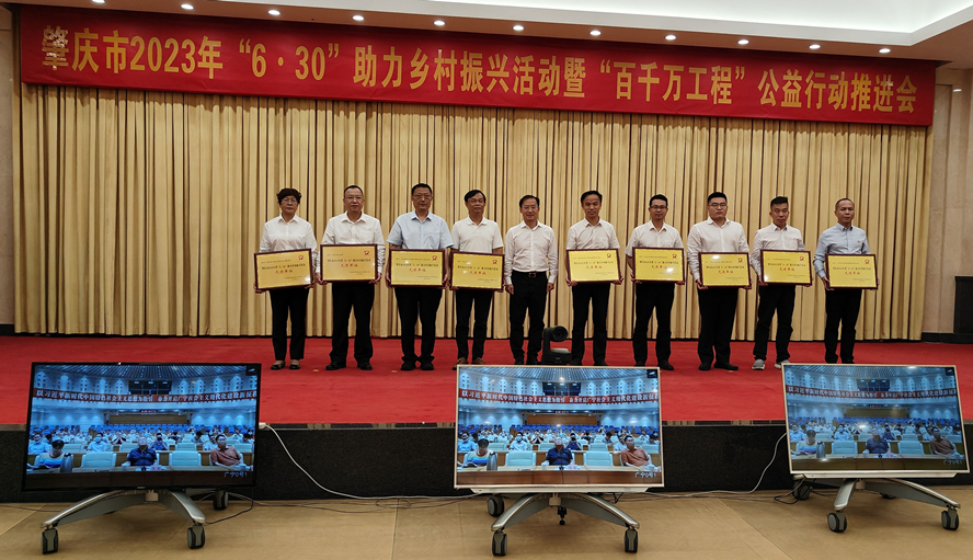 6月26日下午,中共肇庆市委农村工作领导小组发布通报,对2022年度“6·30”助力乡村振兴活动中表现突出的10个爱心单位进行表彰和颁授牌匾。