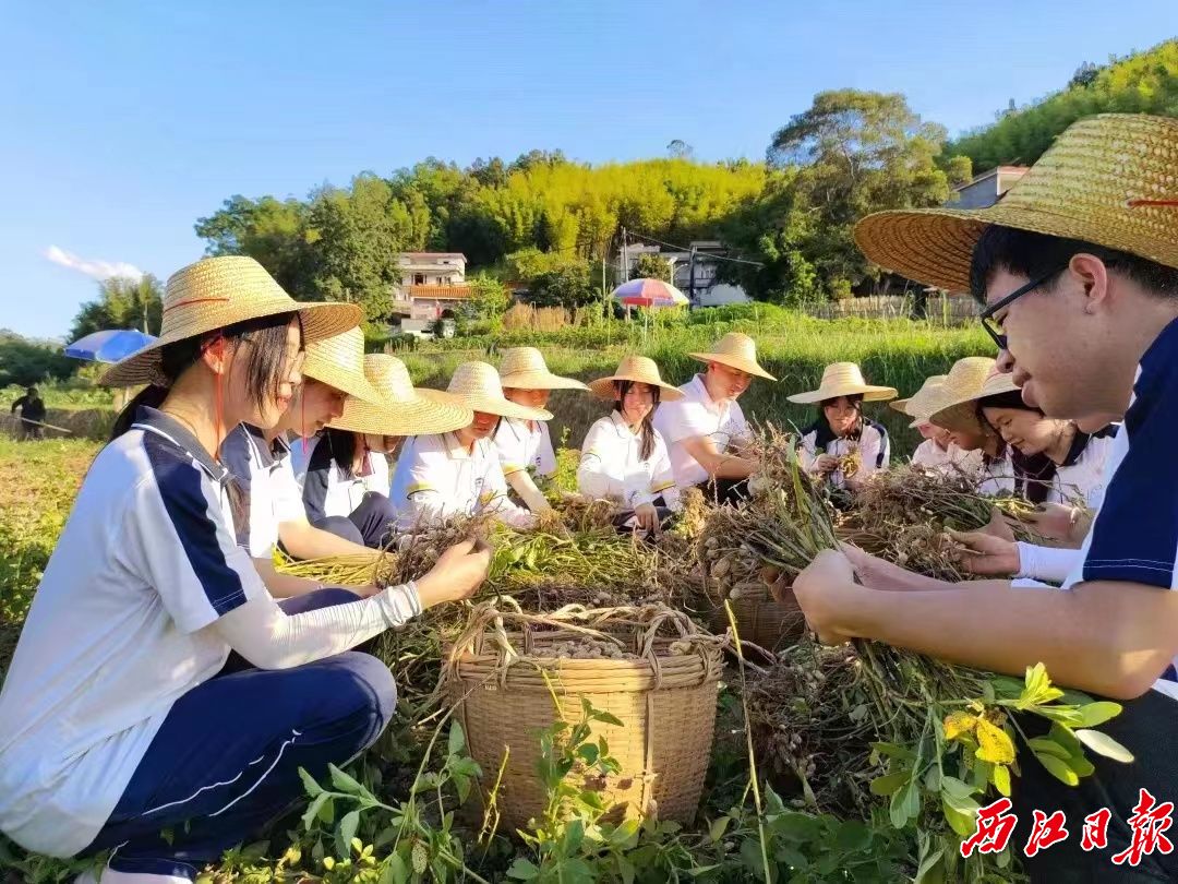大学生在帮农民摘花生。西江日报特约记者 莫学松 摄