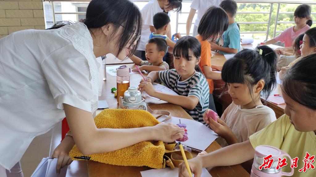 大学生在辅导孩子。西江日报特约记者 莫学松 摄
