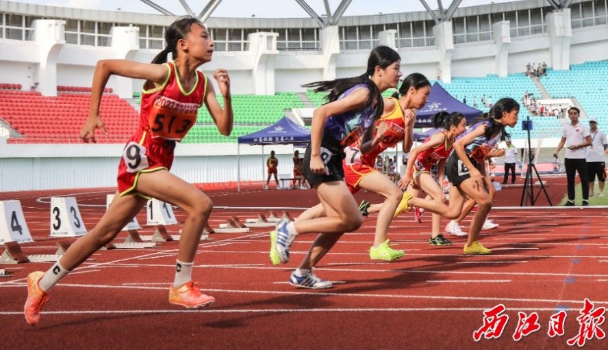图为运动员在女子小学组100米决赛中。西江日报记者 梁小明 摄