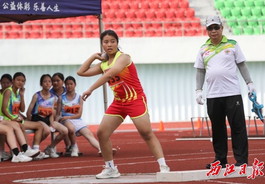 图为运动员在女子小学组铅球决赛中。西江日报记者 梁小明 摄