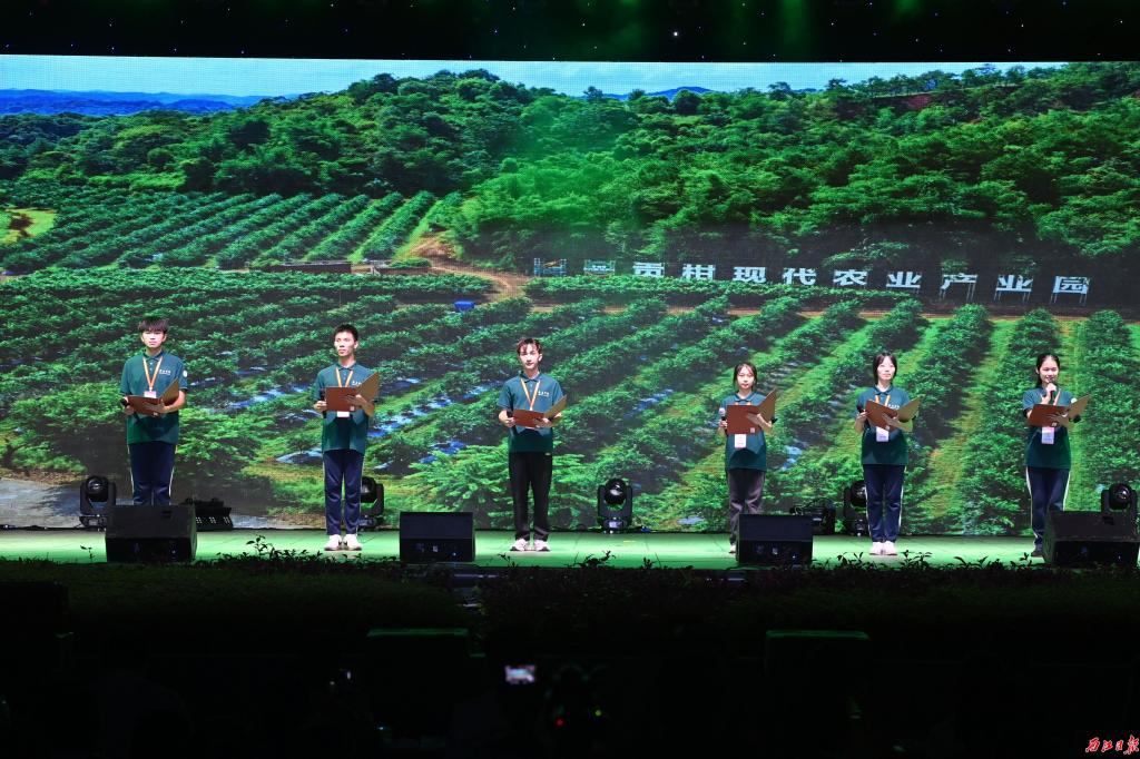 当夜,这场由砚园学子领衔主演的文艺会演吸引了超过8000名群众到场观看,每一个精彩节目都收获热烈掌声。在情景剧《柑路》里,肇庆学院大学生精彩演绎了德庆新农人陈慧放弃城市高薪工作毅然返乡深耕贡柑事业,带领村民走上振兴致富之路的感人故事。节目在充分展现青年风采的同时,也激励了广大青年利用所学知识回馈家乡、共同推进美丽乡村建设。
