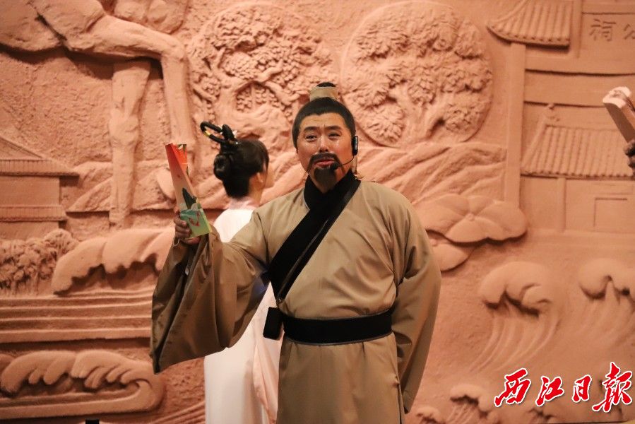 “各位君子,现在是大秦多少年啦?”8月26日,一名来自大秦的士兵“穿越”到肇庆市博物馆,带来一段关于遗落千年的食谱寻觅之旅,一出南朝才子佳人生死绝恋,一次民国白色恐怖绝境逢生………在一件件文物中,一幕幕拟真场景里,在文字解谜、实物寻宝、戏剧互动中,观众和演员共同演绎了一场亦幻亦真的裹蒸千年传奇故事。
