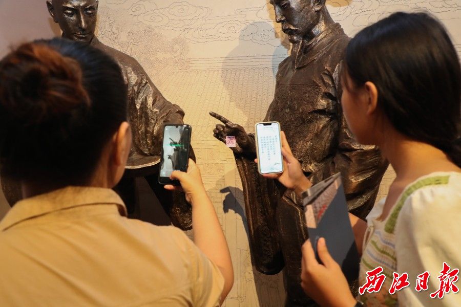 参与现代线索的观众们在博物馆内寻找线索。 西江日报记者 曹笑 摄