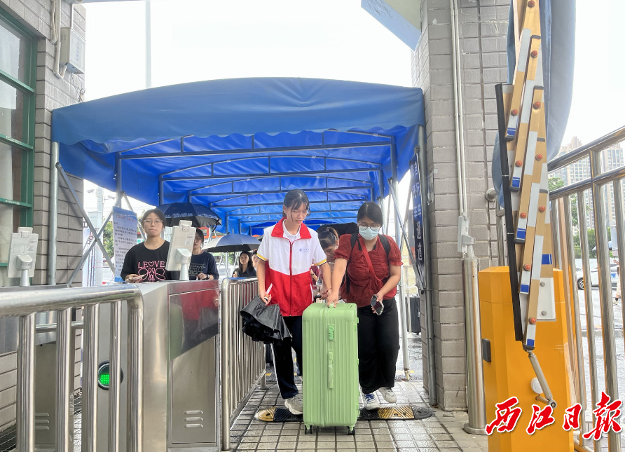 新生在与家人合照留念。西江日报记者 万涛 摄