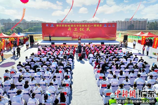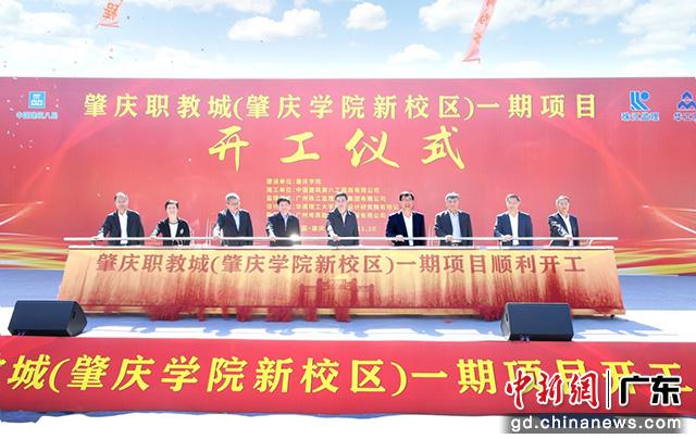 11月20日,肇庆职教城(肇庆学院新校区)一期项目开工仪式在该校新校区建设工地举行。作为肇庆建设北岭科教城,打造“高鼎端”科教走廊,推进教育科技人才一体化发展的重大举措,同时作为肇庆学院加强内涵建设,促进高质量发展,实现“改大申博”目标的重大基础工程,宣布正式动工建设。