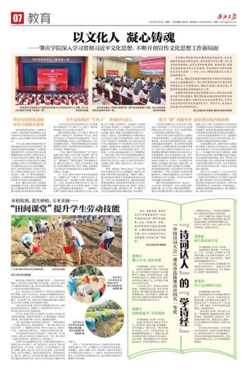 百名肇庆学院教师参加课程思政专题培训,在交流碰撞中提高政治理论素养;数百名青年学子齐聚一堂,学习党的创新理论,在学与思中把握原理、感悟真理;砚园学生接连斩获文体艺术类奖项,尽显新时代大学生青春风采与文化素养……如今,沁人心脾的思想文化之风正吹遍砚园处处。