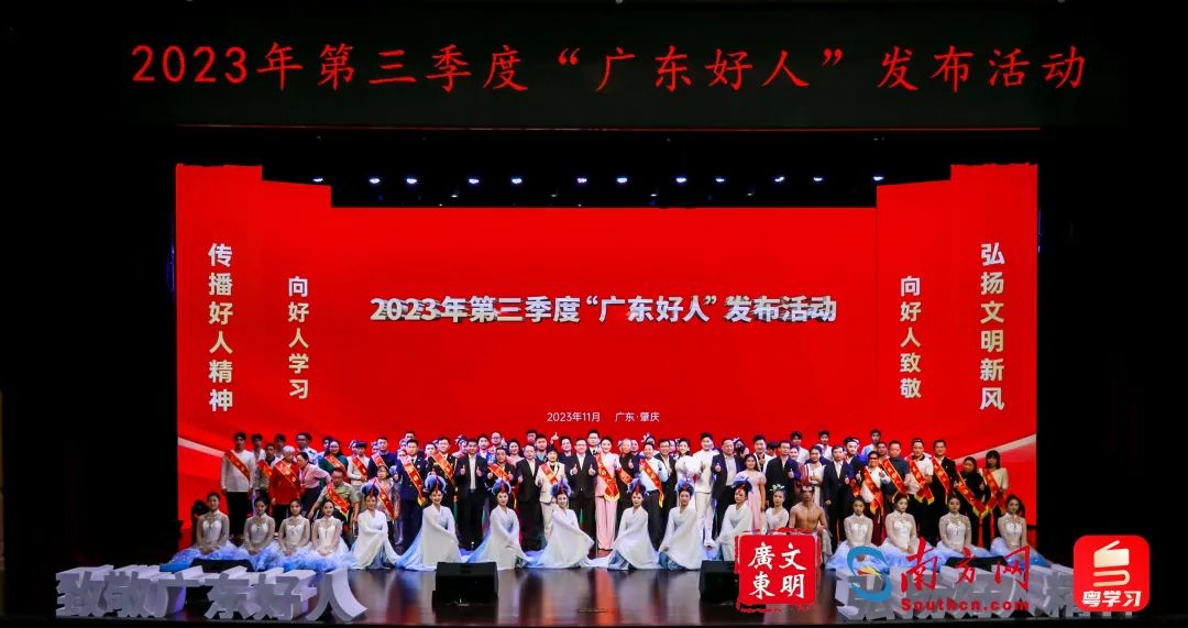 11月30日下午,2023年第三季度“广东好人”发布活动在肇庆学院艺术中心举行。本次活动由广东省精神文明建设委员会办公室主办,南方新闻网、中共肇庆市委宣传部、肇庆市精神文明建设委员会办公室、肇庆学院承办。省委宣传部、省文明办领导同志,省教育厅、省公安厅、省退役军人事务厅、省司法厅、省国资委、省总工会、团省委、省税务局等省直单位有关处室负责同志,全省各地级以上市委宣传部副部长、文明办主任,以及2023年第三季度“广东好人”代表、肇庆市干部及群众代表、学生代表等参与本次活动。