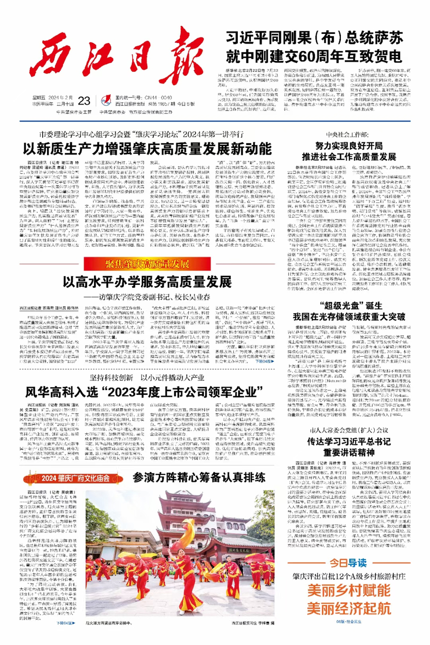 2023年是肇庆学院深入推进内涵式高质量发展的重要一年。一年来,学校深入开展学习贯彻习近平新时代中国特色社会主义思想主题教育,强化党建引领,全面实施“改大申博”品质提升工程,新校区建设顺利启动,在人才培养、科技创新等方面都取得了扎实成效,进一步夯实建设新时代特色鲜明的高水平应用型大学基础。
