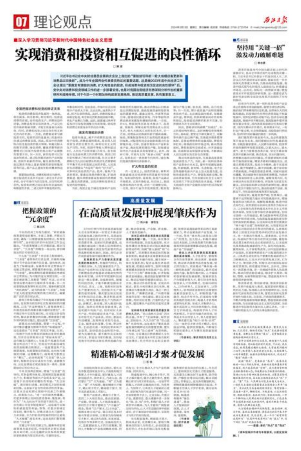 2月18日举行的全省高质量发展大会全面吹响新一年坚定不移走好高质量发展之路的冲锋号。高质量发展是全面建设社会主义现代化国家的首要任务,是新时代的硬道理,也是肇庆建设珠三角核心区西部增长极和粤港澳大湾区现代新都市的必然选择和根本途径。因此,我们必须在高质量发展中展现肇庆作为。