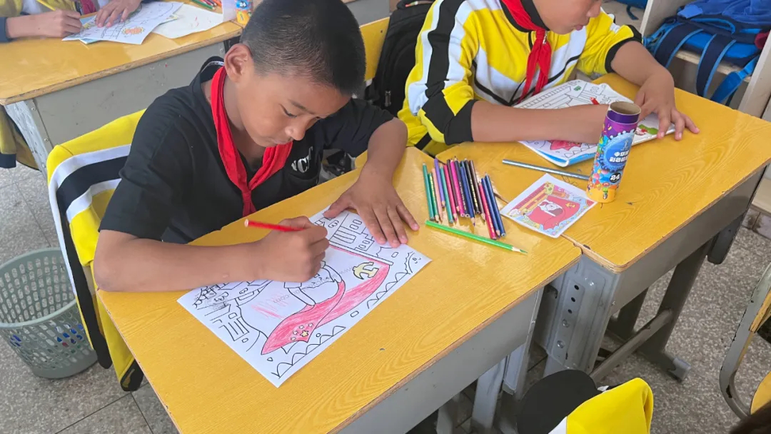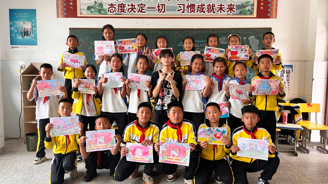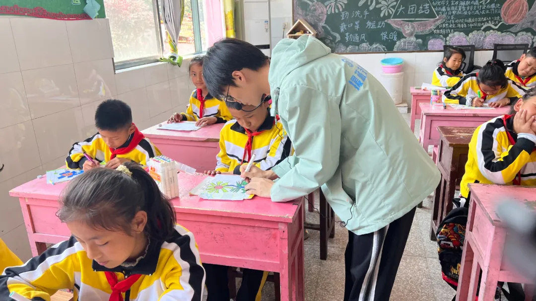 在支教期间,陈炜权为孩子们精心策划了一系列充满创意的美术课程,其中包括绘画、手抄报制作以及小手工等多样化的艺术活动。课前,他总是亲力亲为地制作教具,以确保为孩子们带来最佳的学习体验。在课堂上,他竭尽所能为孩子们创造独特而丰富的美术之旅,让他们沉浸在无尽的创意与想象中。