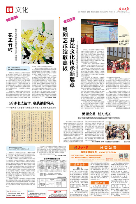 肇庆学院音乐学院院长张东东表示,此次引入粤剧学术讲座是学校“高雅艺术进校园”的重要举措之一。高校在非遗传承中具有独特的优势和责任,作为广东省非物质文化遗产研究基地,肇庆学院有责任和义务为非遗文化传承贡献力量。