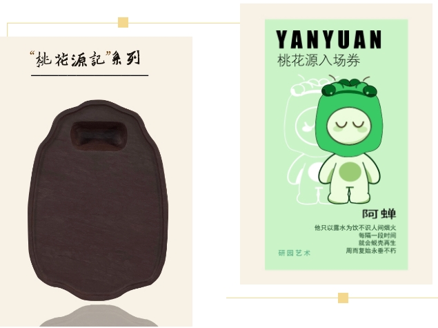 据主要创作者柯颖介绍,《桃花源记系列文创砚台》以古文《桃花源记》为灵感,将传统文化元素融入现代设计创作出20个独特的IP形象,作品在保持砚台实用功能的同时注重文化内涵的挖掘与现代审美的融合,通过简约而不简单的设计,将中国传统美学以当代语言重新诠释赋予了端砚这一传统工艺品新的生命力。