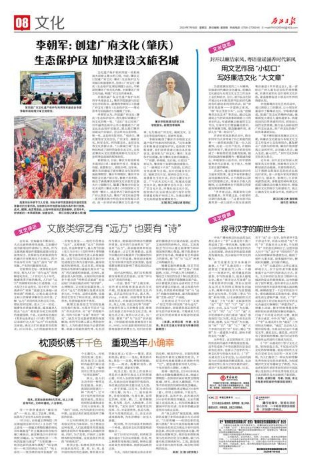 李朝军认为,在创建广府文化(肇庆)生态保护区中,首先要识别肇庆广府文化的唯一性。“目前广东已经有广州市越秀区和中山市小榄镇两个广府文化生态保护实验区,那么我们肇庆创建这个实验区,怎么样突出差异性、唯一性,这是首当其冲的。”他表示,肇庆要坚定文化自信,广信文化、端砚文化、铁军文化、利玛窦文化、龙母文化等文化资源众多,“山湖城江峡”生态格局构成了独特的绿色生态文化,这些是肇庆从文化资源高地转化为文化产业和事业高地的根本依托。