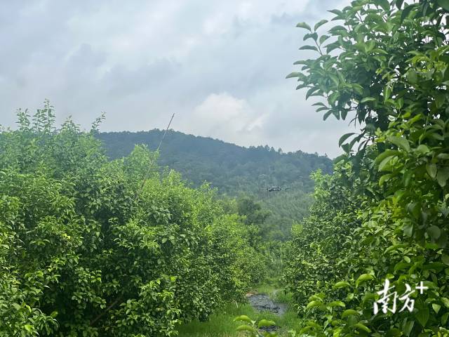 烈日当空,酷暑难耐。在肇庆四会黄田镇的四会砂糖橘省级现代农业产业园里,一架无人机盘旋在果树间,从上向下瞄准叶面,“咔嚓”拍摄。