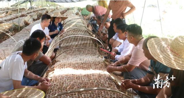 肇庆学院教授邵玲为当地巴戟天种植户讲解组培苗相关技术。