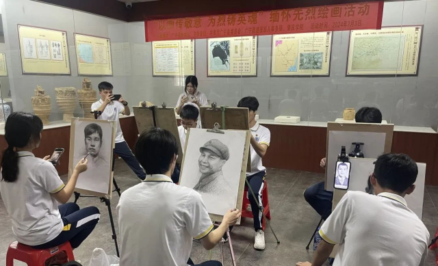肇庆学院美术学院、设计学院成立了“追忆峥嵘岁月,绘铸烈士英魂”实践团,与共青团广宁县委员会共同开展了以“以画传敬意,为烈铸英魂”为主题的烈士遗像描绘活动。实践团由2名指导教师与18名青年学生组成,深入广宁县,收集烈士遗像,进行素描绘画。