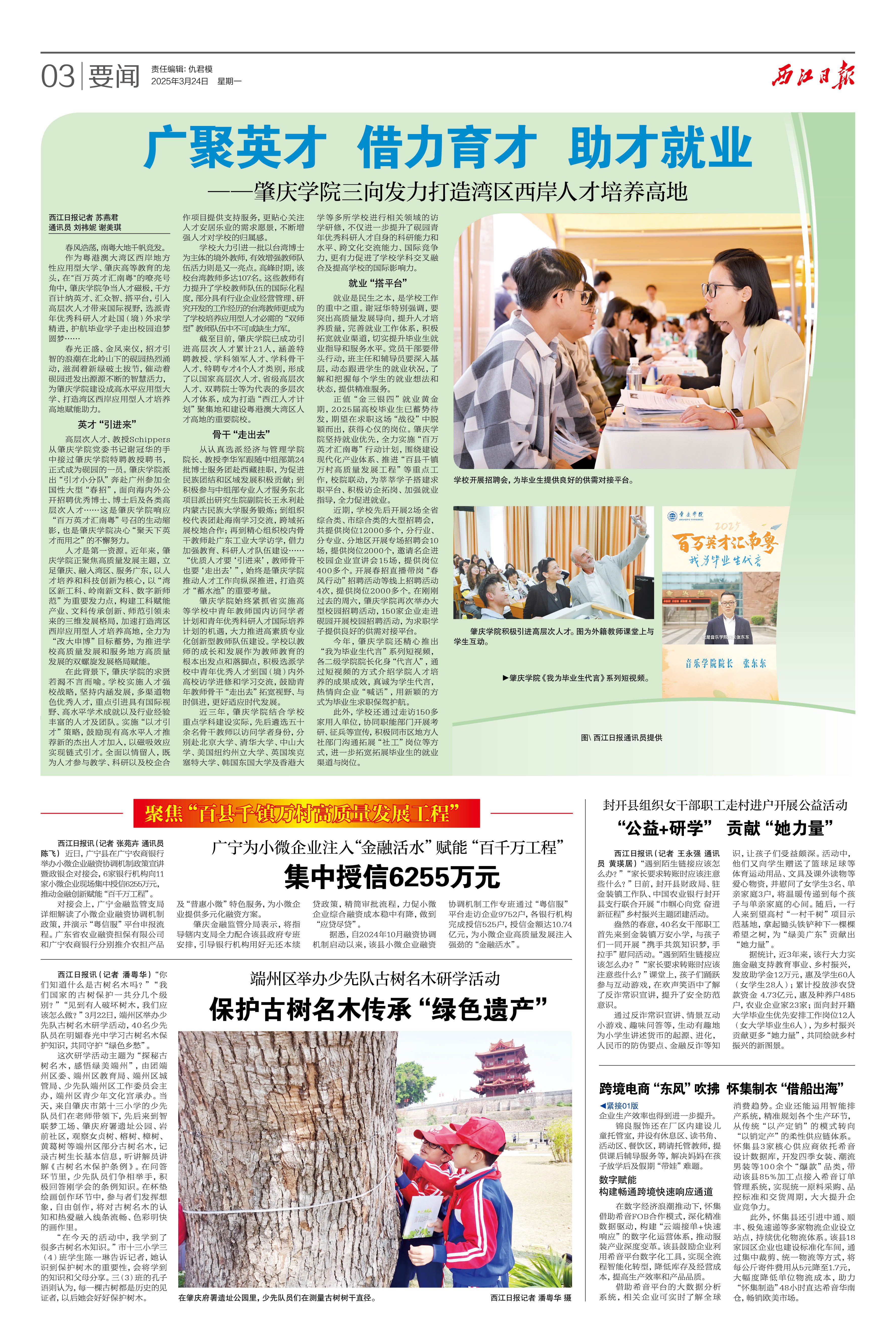人才是第一资源。近年来,肇庆学院正聚焦高质量发展主题,立足肇庆、融入湾区、服务广东,以人才培养和科技创新为核心,以“湾区新工科、岭南新文科、数字新师范”为重要发力点,构建工科赋能产业、文科传承创新、师范引领未来的三维发展格局,加速打造湾区西岸应用型人才培养高地,全力为“改大申博”目标蓄势,为推进学校高质量发展和服务地方高质量发展的双螺旋发展格局赋能。