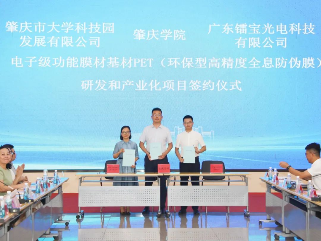 在前期校企深入对接的基础上,本次活动现场校方与企业签订了4项协议:◆ 一是与广东镭宝光电科技有限公司签订电子级功能膜材基材PET(环保型高精度全息防伪膜)的研发和产业化项目,实现填补国内技术空白;