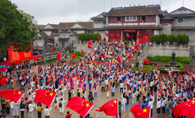 青年学子参加“大湾区大未来”《我和我的祖国》快闪活动。