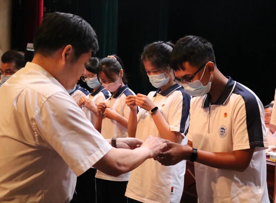肇庆学院党委书记曾桓松为2021级新生代表佩戴校徽,这是仪式,更是传承。