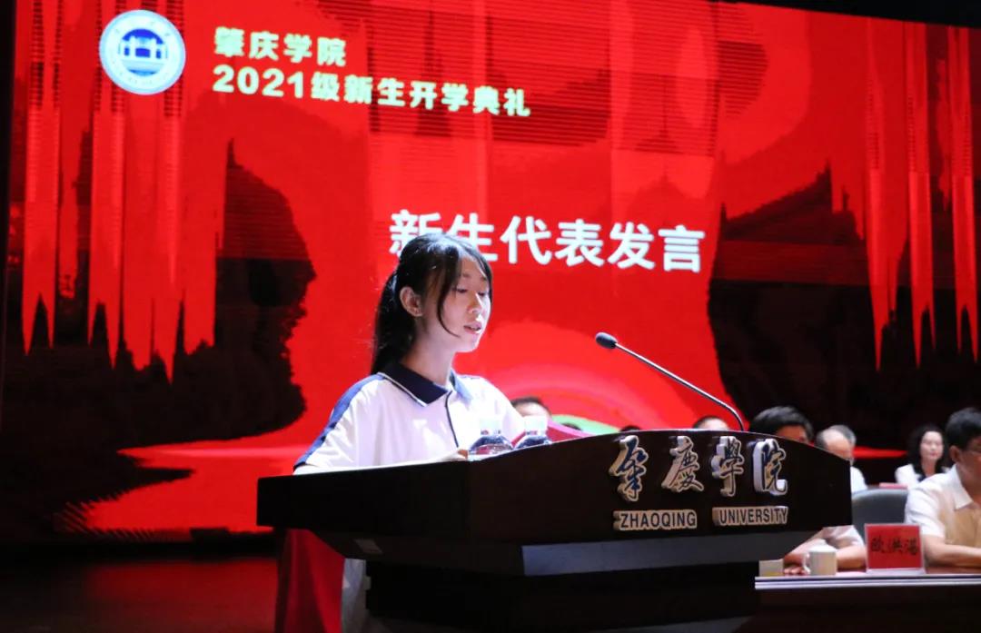 “今天,我们相聚在灿烂的金秋,这是一个收获的季节,遍地瓜果飘香;今天,我们遇见在美丽的砚园,这是一片教育的沃土,青春焕然绽放……” 由4位旧生代表,以一段段真挚的告白,道出了他们对大学生活的理解,追梦需要理想,圆梦需要奋斗和奉献,这首正气回荡的肇庆学院版的《请党放心,强国有我》诗朗诵打动了不少新生的心。