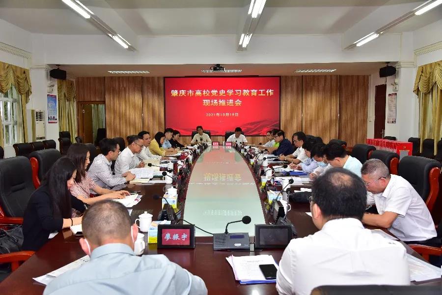 为推动我市高校党史学习教育高标准高质量开展,结合省委党史学习教育第五巡回指导组对我市高校开展党史学习教育专项督导反馈情况,10月19日,市委教育工委在肇庆学院召开全市高校党史学习教育工作现场推进会,落实整改我市高校党史学习教育中存在的不足,部署下阶段工作任务,推动我市高校党史学习教育持续深入。市委党史学习教育第三巡回指导组组长陆崇尧,市委教育工委书记、市教育局党组书记、局长罗浩翔出席会议并讲话。市教育局三级调研员、局直属机关党委书记李湘生主持。市教育局高校党建办干部,肇庆学院、肇庆医学高等专科学校、广东理工学院、广东工商职业技术大学、广东信息工程职业学院、广东肇庆航空职业学院党委负责人及相关同志参加。