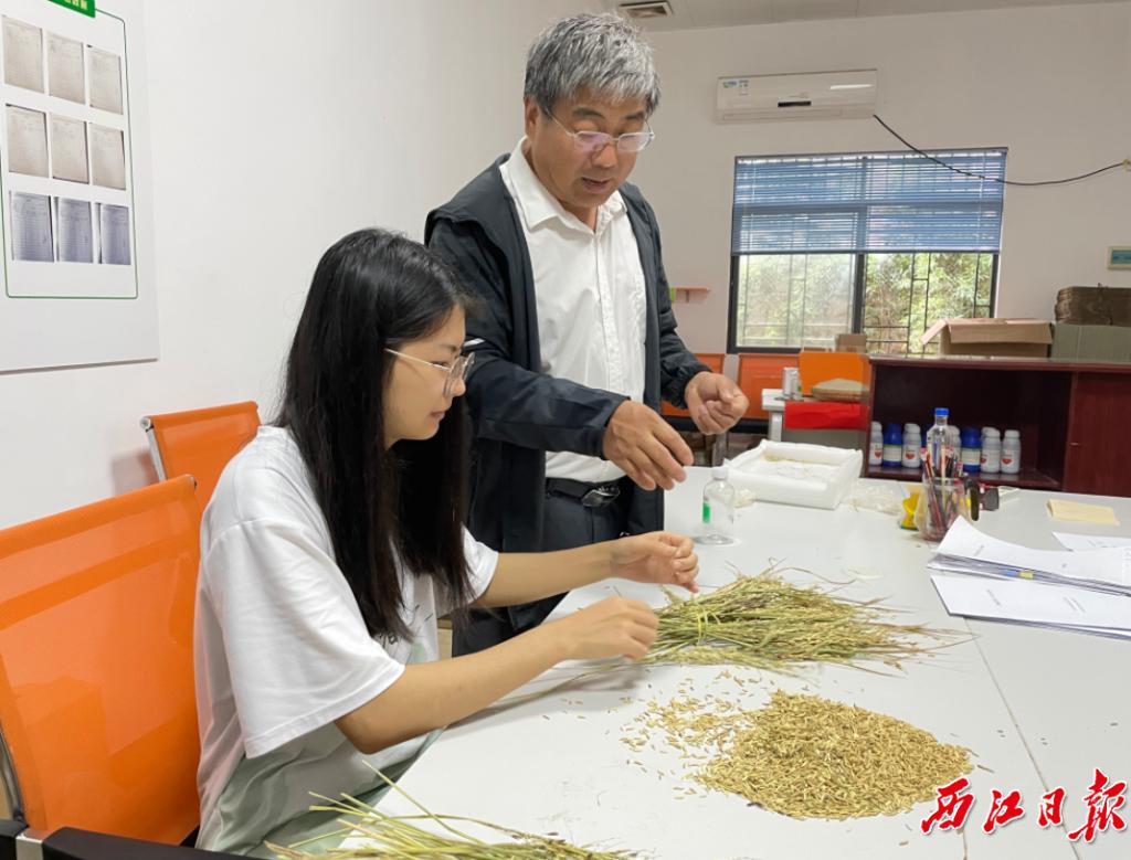 张宝杰指导团队学生对富硒水稻进行筛选检测。