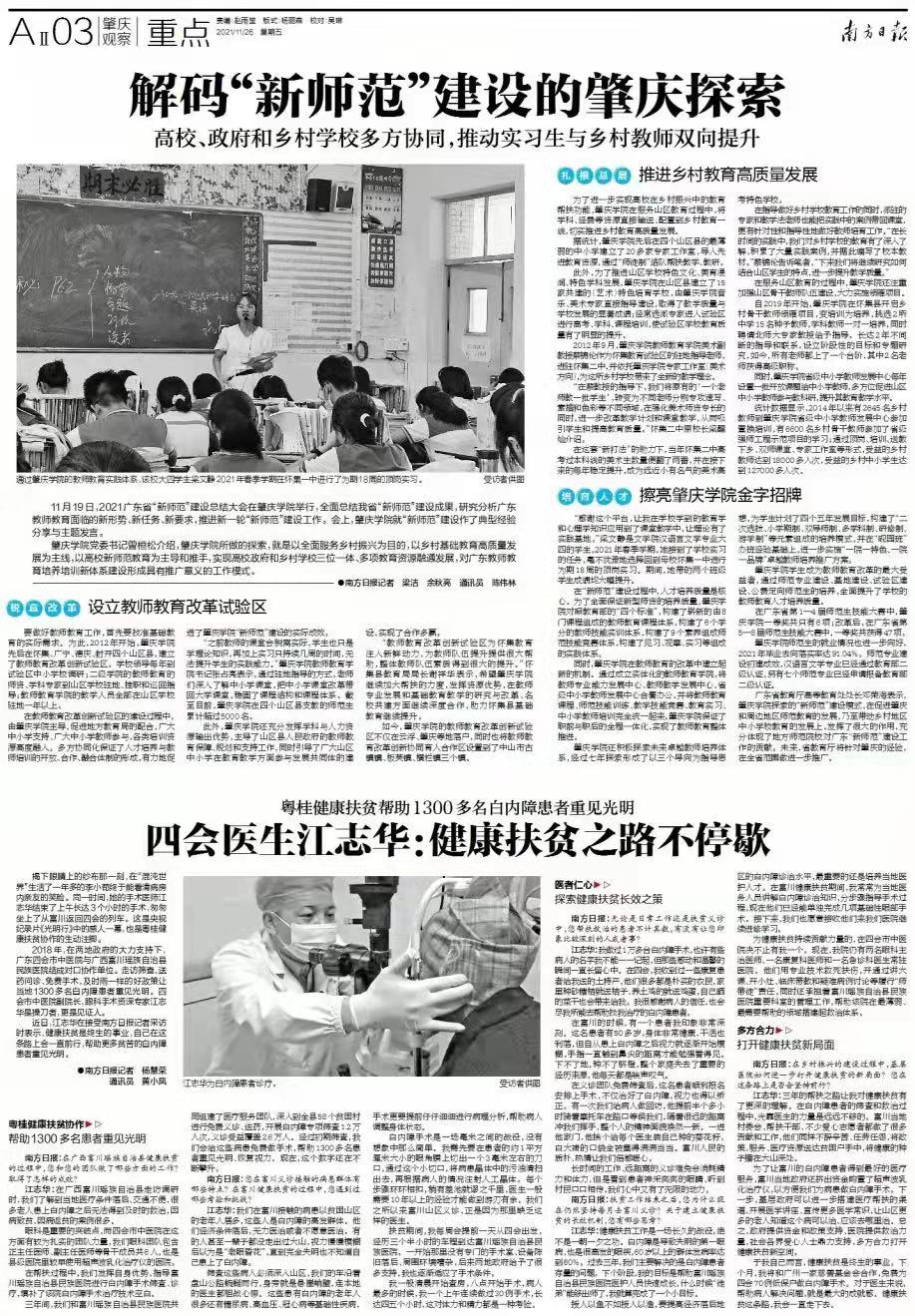 为了进一步实现高校在乡村振兴中的教育帮扶功能,肇庆学院在服务山区教育过程中,将学科、经费等资源直接输送、配置到乡村教育一线,切实推进乡村教育高质量发展。