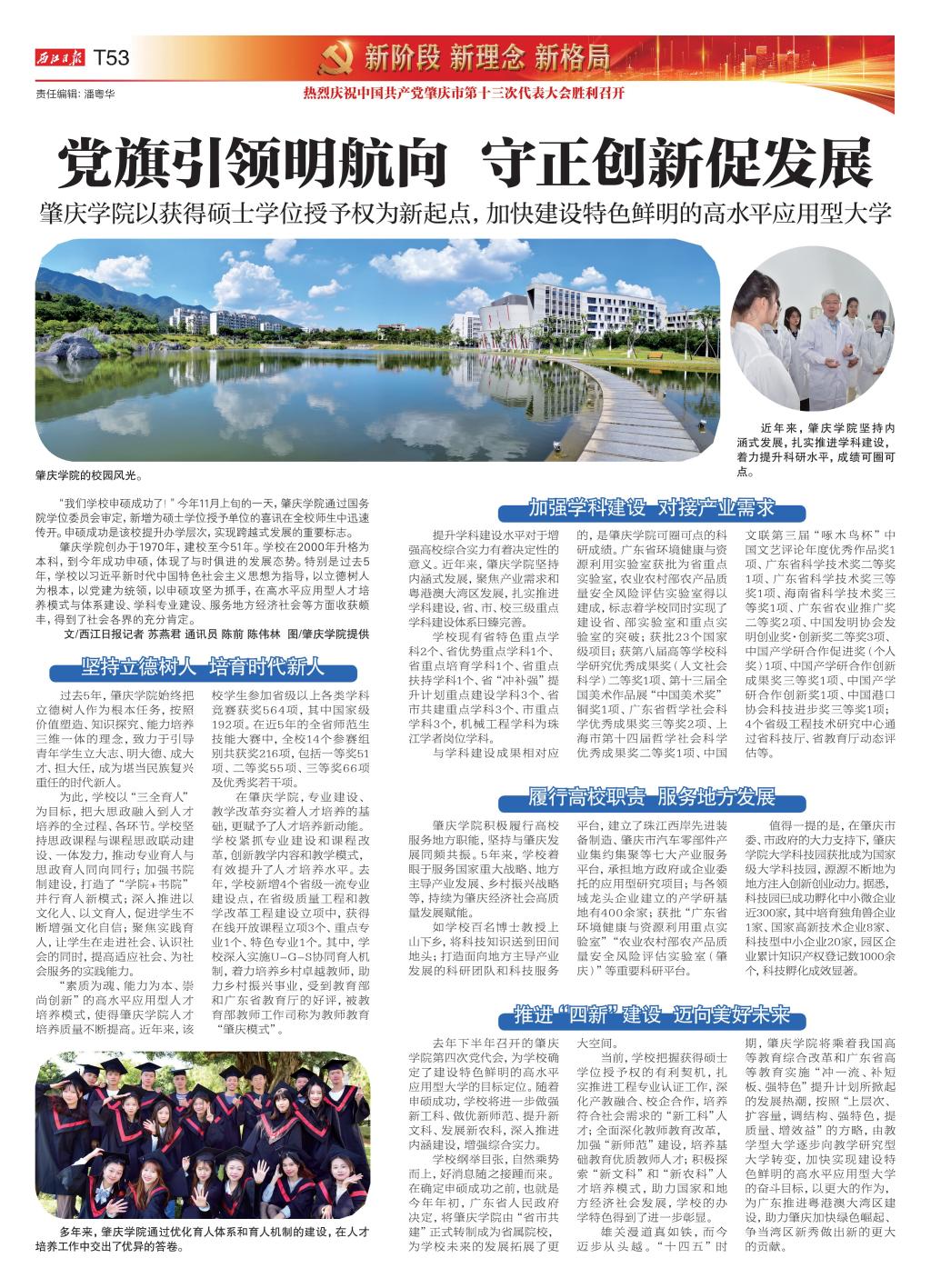 肇庆学院创办于1970年,建校至今51年。学校在2000年升格为本科,到今年成功申硕,体现了与时俱进的发展态势。特别是过去5年,学校以习近平新时代中国特色社会主义思想为指导,以立德树人为根本,以党建为统领,以申硕攻坚为抓手,在高水平应用型人才培养模式与体系建设、学科专业建设、服务地方经济社会等方面收获颇丰,得到了社会各界的充分肯定。