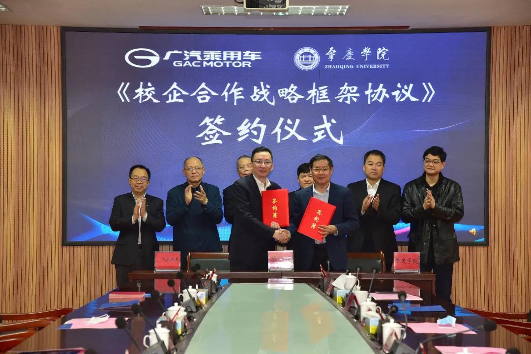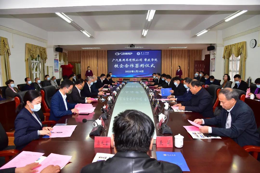 1月16日,肇庆学院与广汽乘用车有限公司正式签署校企合作战略框架协议,双方将共享资源优势,围绕智能网联汽车技术、智能驾驶和智慧交通等领域,在人才培养、科学研究、基地建设和成果转化等方面开展深度合作,以校企战略合作伙伴关系和常态化校企合作机制助力推动新时代产教融合发展。