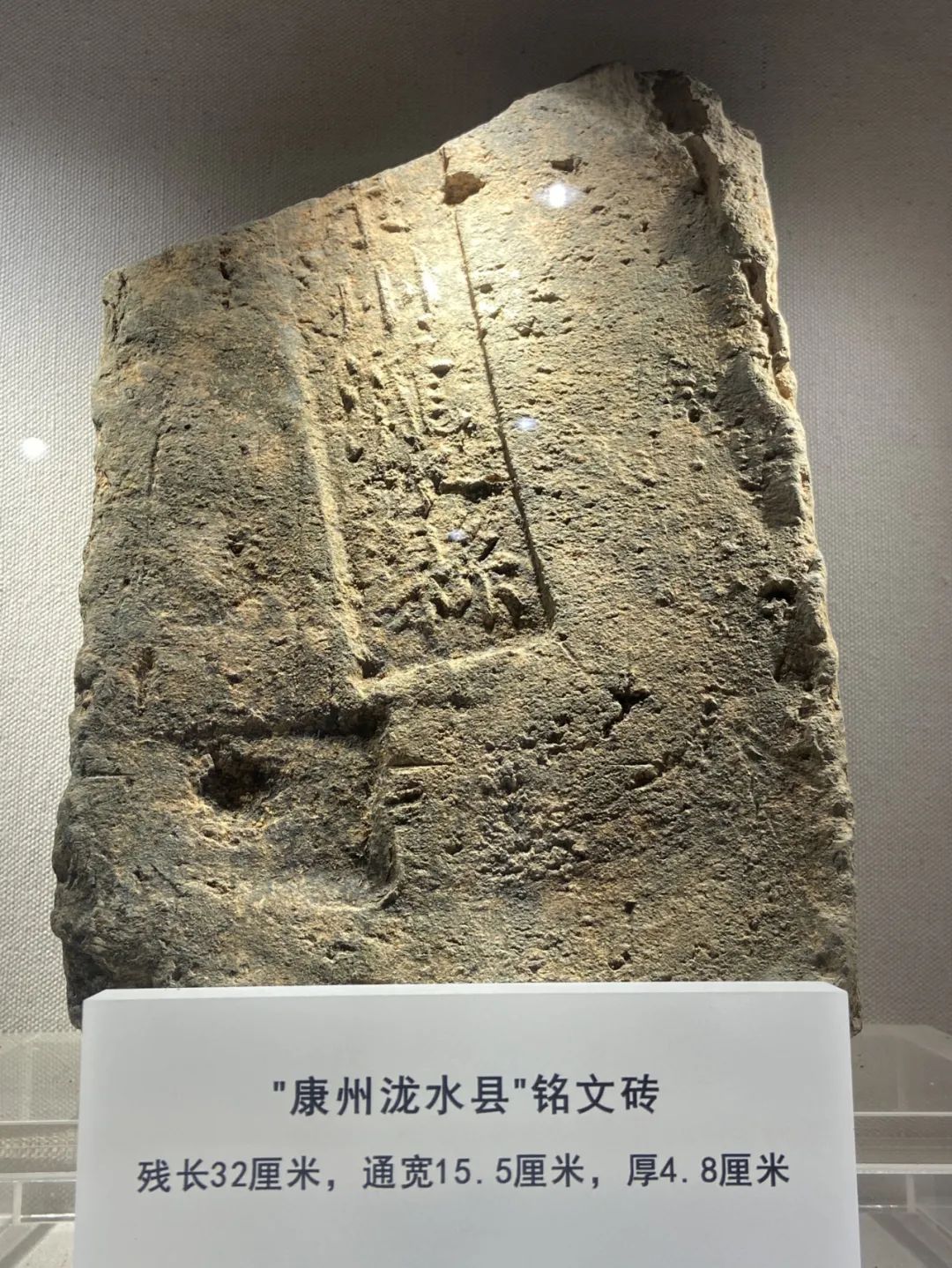 ▲“康州泷水县”铭文砖。西江日报全媒体记者 赖小琴 摄