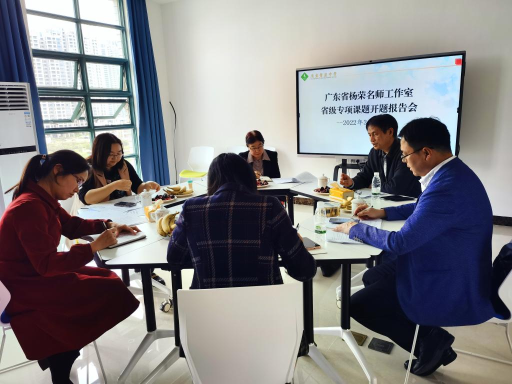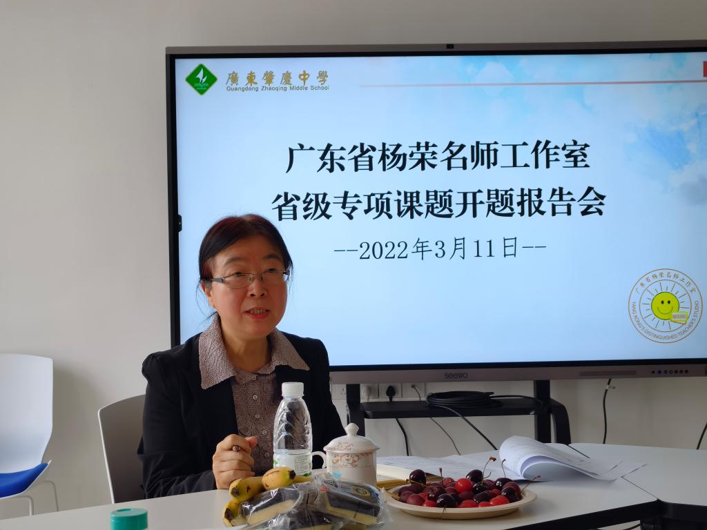 2022年3月11日下午,阳春三月,微风拂面,广东省杨荣名教师工作室省级专项课题开题报告会在广东肇庆中学东湖校区举行。报告会邀请肇庆市教师发展中心黄国洪主任以及肇庆学院外国语学院马宁慈教授作为评审专家,课题组的部分成员参加了会议。