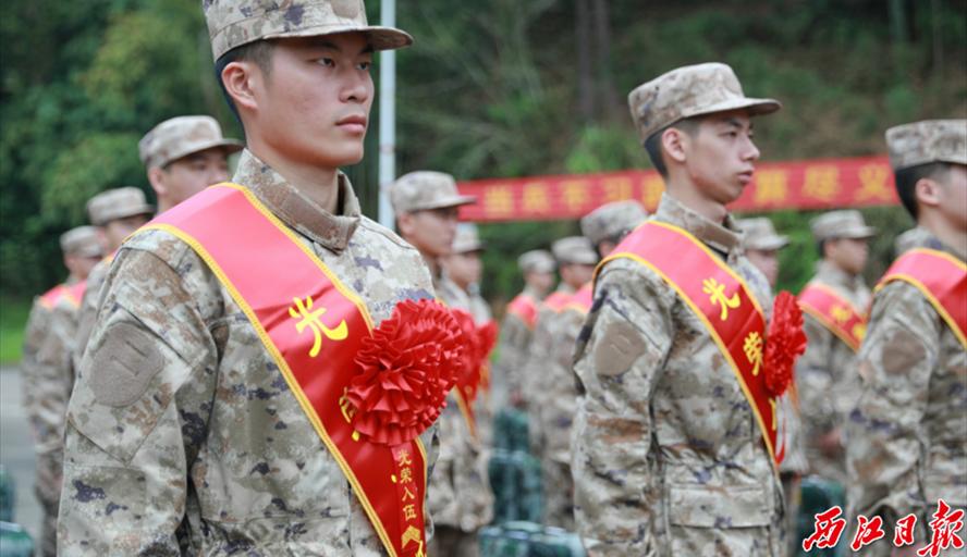 新兵欢送仪式上的刘振威(左)。通讯员 李海霞 摄