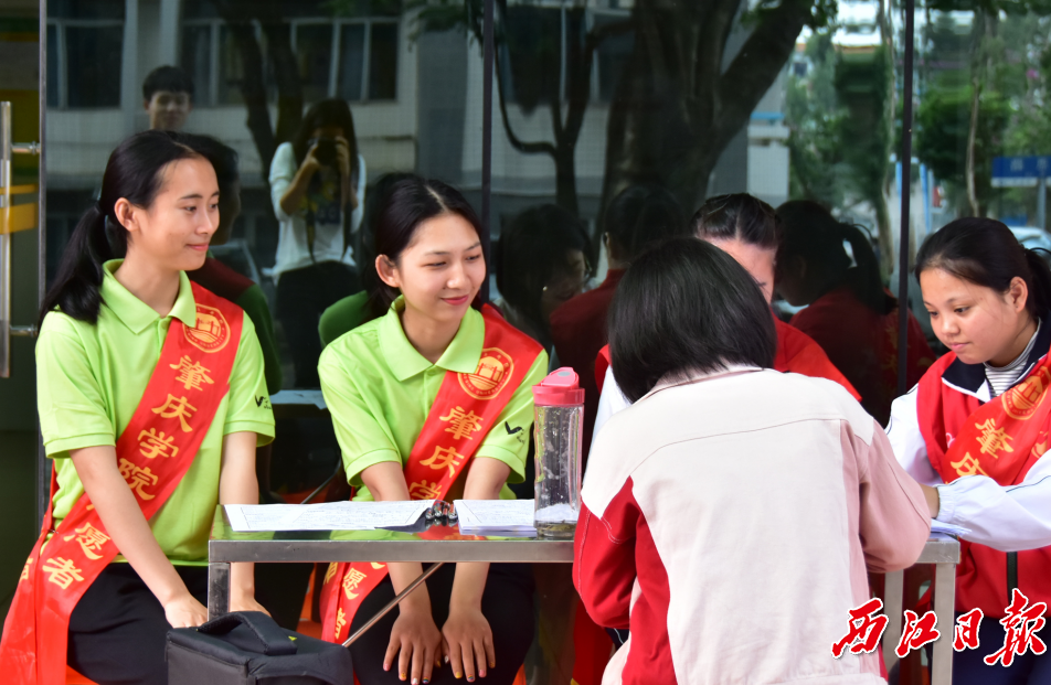 肇庆学院志愿者协助义务献血。肇庆学院供图