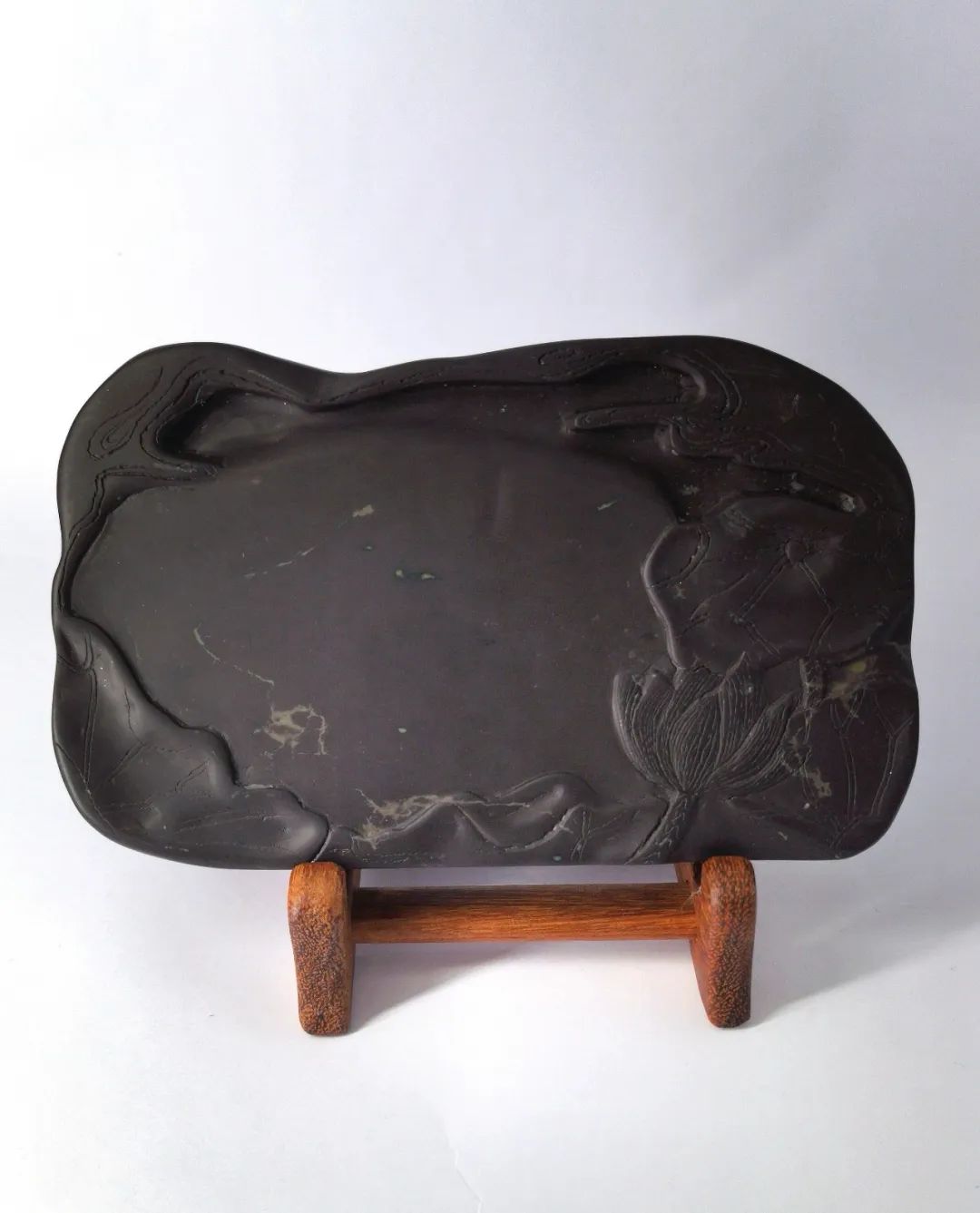 砚乃文房四宝之一,在中国所产的四大名砚中,尤以端砚最为称著。宋朝著名诗人张九成赋诗赞道:"端溪古砚天下奇,紫花夜半吐虹霓。"端砚的历史悠久,石质优良,雕刻精美。端砚石出产在肇庆市东部的烂柯山和肇庆市七星岩北面的北岭山一带,尤以老坑、麻子坑和宋坑三地之砚石为最佳。砚石多为青紫色、猪肝色、天青色,其上有凤眼、鹦哥眼者属上品,而眼中呈现出翠绿色者最为难得。无论是老坑砚石、麻子坑砚石,还是宋坑砚石,属佳品者,其上又多伴有冰纹、胭脂晕、马尾纹、金线纹,或单一纹路,或兼而有之,组合成一幅瑰丽多彩的图画。