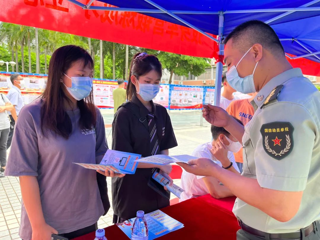 “我今年大二,现在入伍可以在部队报考军校吗?”“现在女兵名额多吗?”在肇庆学院征兵宣传现场,同学们热情洋溢,纷纷前来咨询参军入伍相关政策。近期,肇庆市端州区征兵办在辖区多所高校、中学开展2022年夏秋季征兵宣传进校园活动,全面掀起参军热潮。