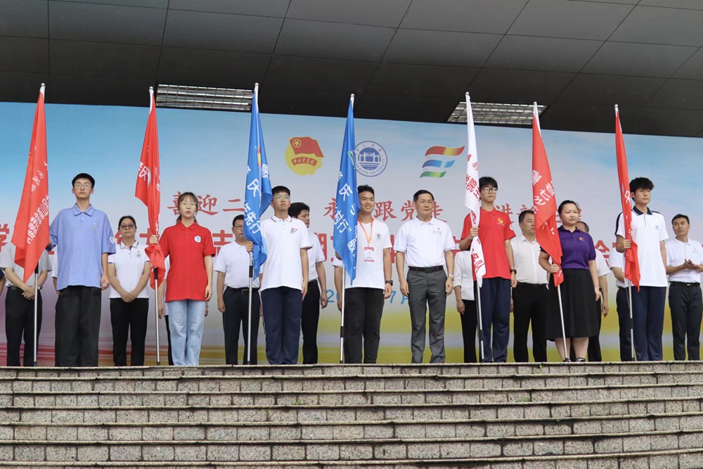 7月7日,肇庆学院隆重举行“三下乡”社会实践活动出征仪式,深入学习宣传贯彻习近平新时代中国特色社会主义思想和党的十九届六中全会精神,引导和帮助广大青年学生上好与现实相结合的“大思政课”,在社会课堂中“受教育、长才干、作贡献”,迎接党的二十大胜利召开。