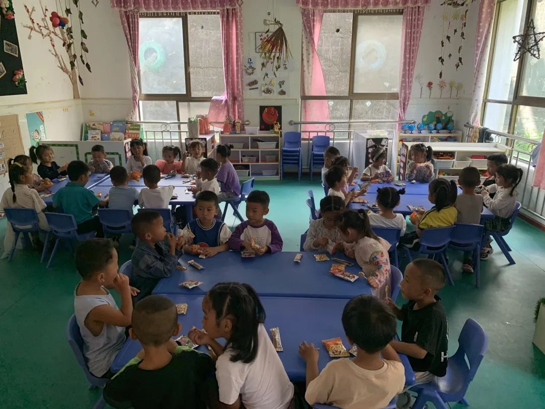 图为支教队员钟涛璟为班上小朋友准备的小零食