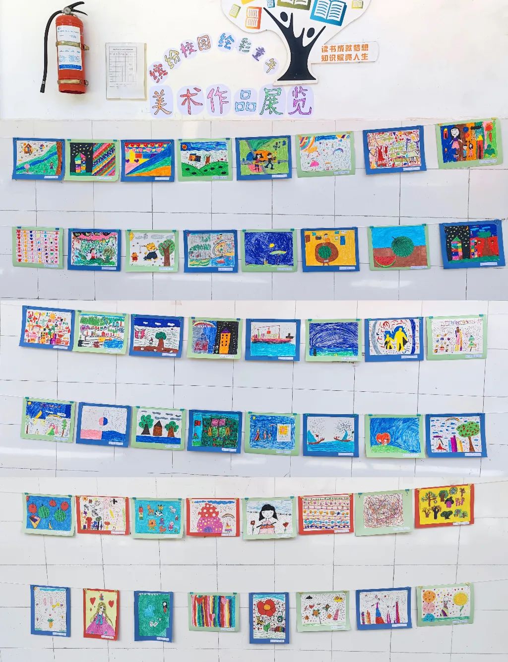 图为格当乡小学学生的美术作品展