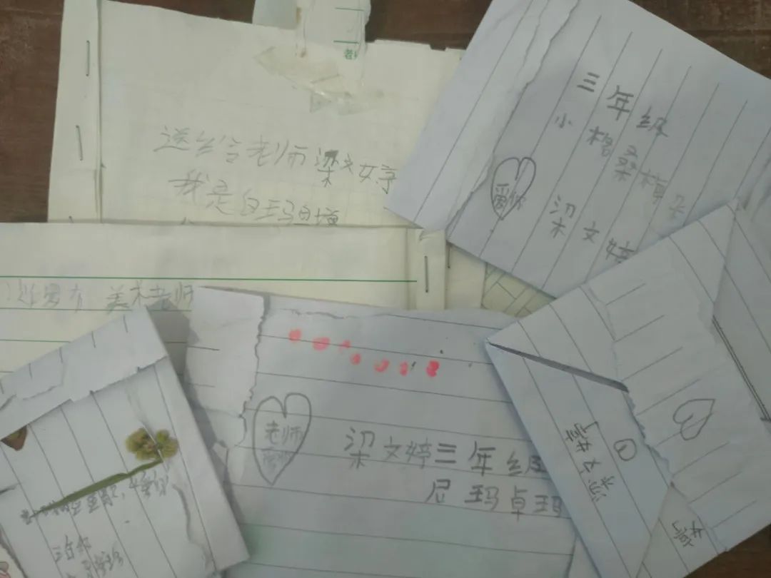 图为学生为支教队员梁文婷写的纸条