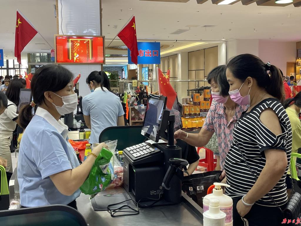 市民排队结账。西江日报记者 吴映霖 摄