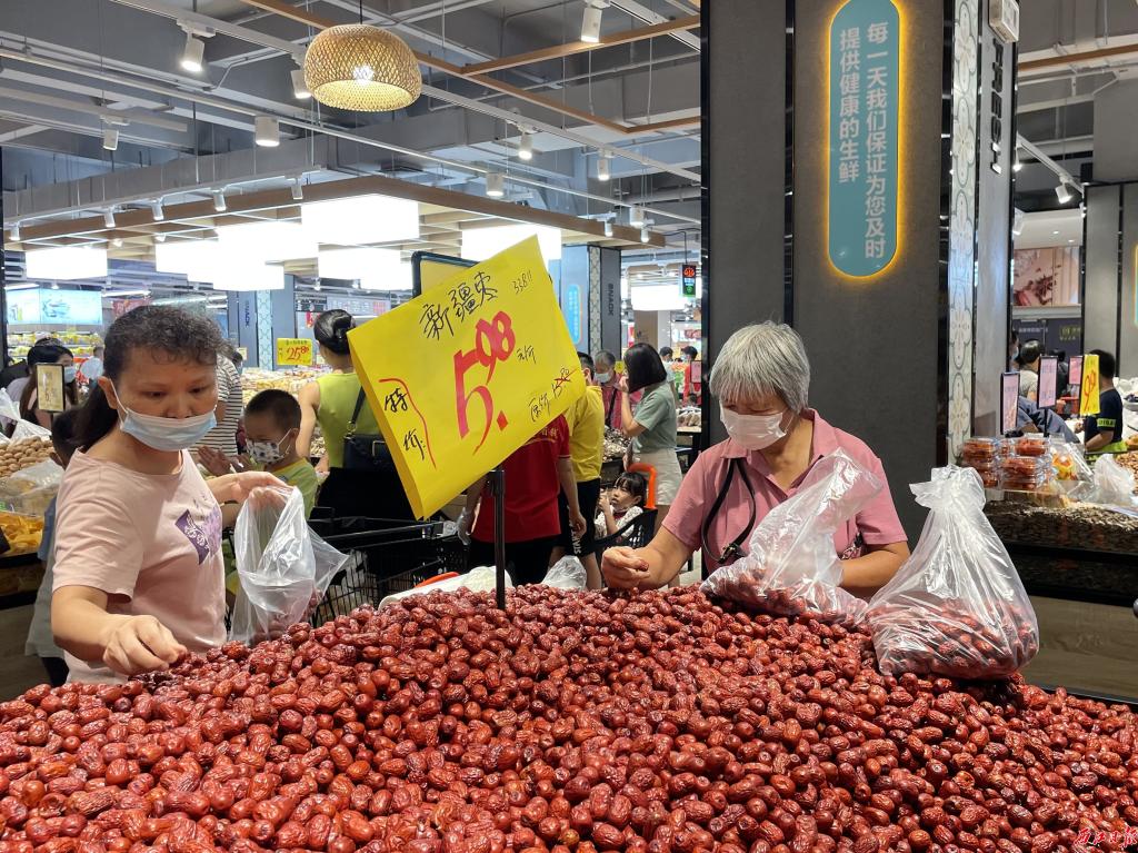 新开业超市市民选购折扣商品。西江日报记者 吴映霖 摄